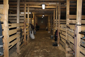 * светлая деревянная конюшня;